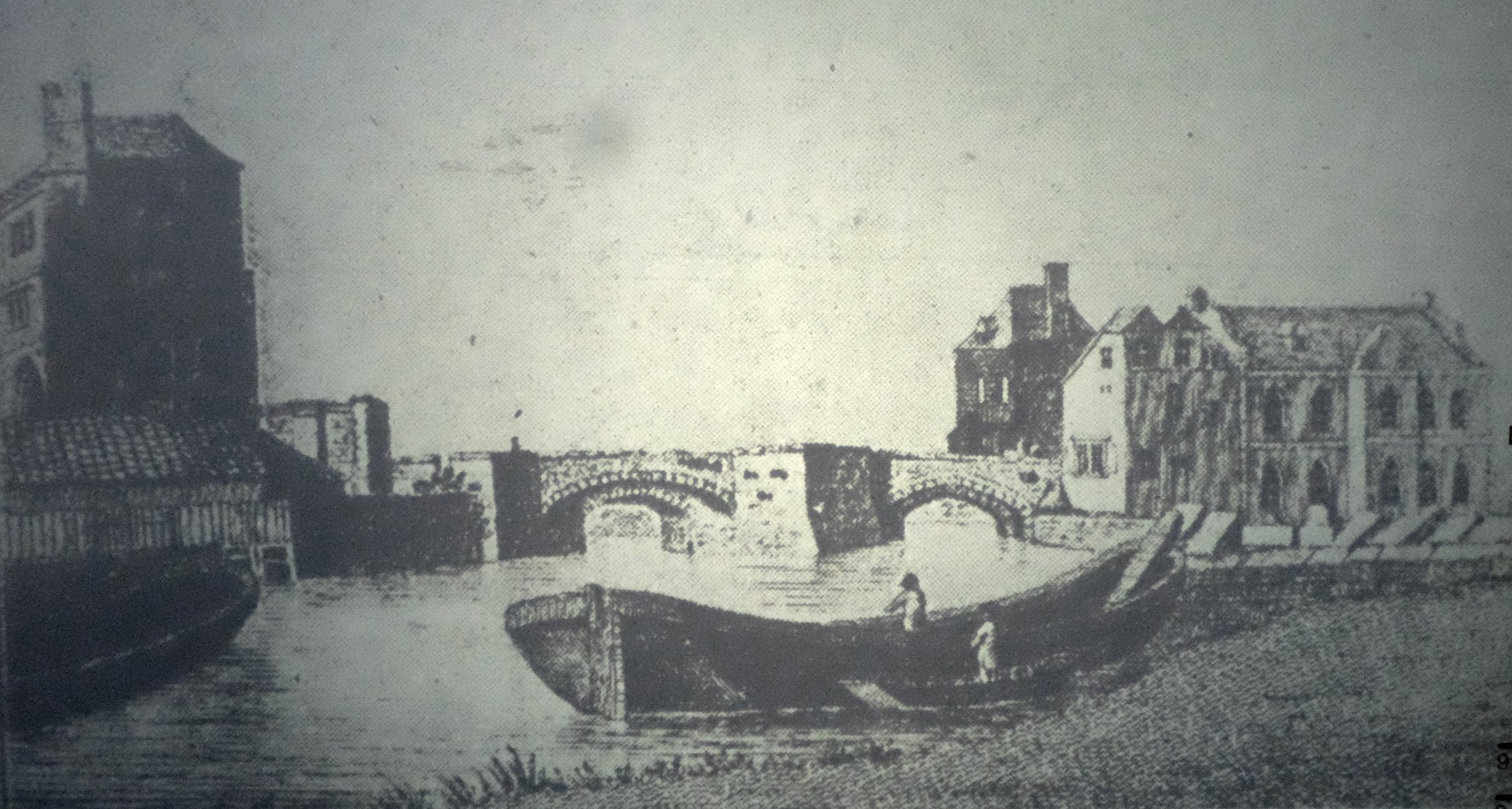 Oxford's first stone bridge, known as South Bridge, was built over the Thames by Robert d'Oilly (who also built Oxford Castle) in the 11th century. It was part of the great causeway, or grand pont, which carried what is now the Abingdon Road over water meadows, on more than forty arches, from the bottom of Hinksey Hill to St Aldates. A defensive tower, with a portcullis, drawbridge and heavy gates was built at the southern end of the bridge, probably in the 13th century. It was known as New Gate and provided an initial line of defence against anyone approaching the city from the south. (The southern gate of the city walls was further north, on St Aldates, near where Christ Church now stands.) Timber, iron bars and locks were bought for the tower in 1310-11 and repairs were made regularly throughout the later Middle Ages. It later became known as Friar Bacon’s study because the Franciscan Friar Roger Bacon, who lived between 1214 and 1292 and was said to be the founder of English philosophy and one of the greatest minds in Europe, apparently used it as an observatory to study astronomy.