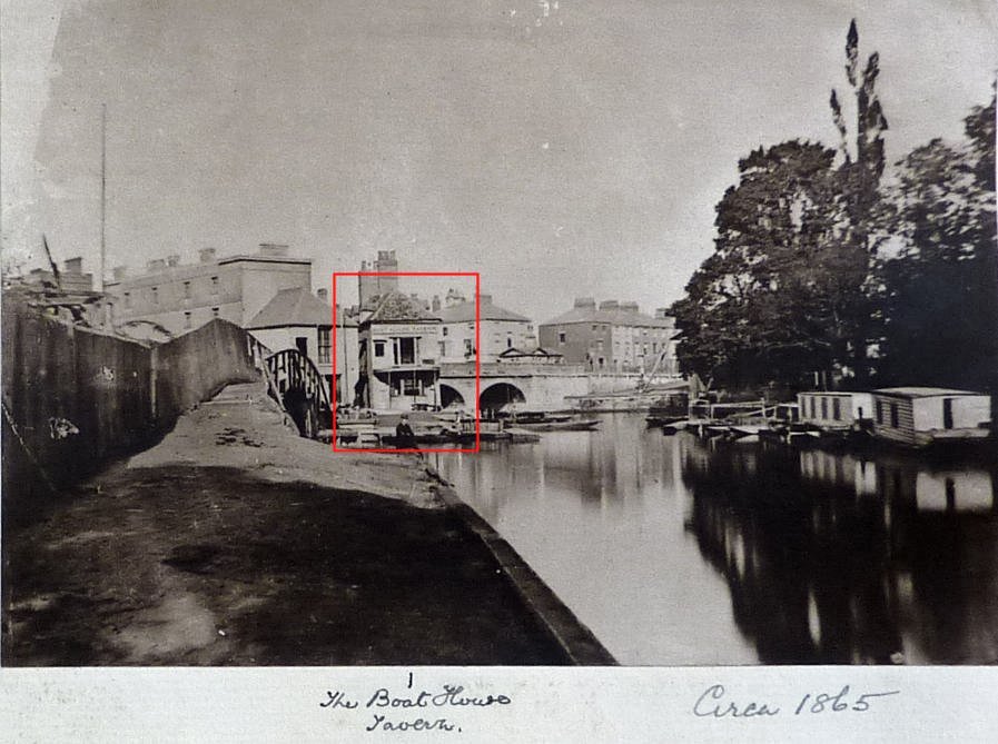 The Boat House Tavern, south east of Folly Bridge, c. 1865. Image from the Henry Minn collection, Bodleian Library, MS Top Oxon d.493, p.32. (Click on image to close)