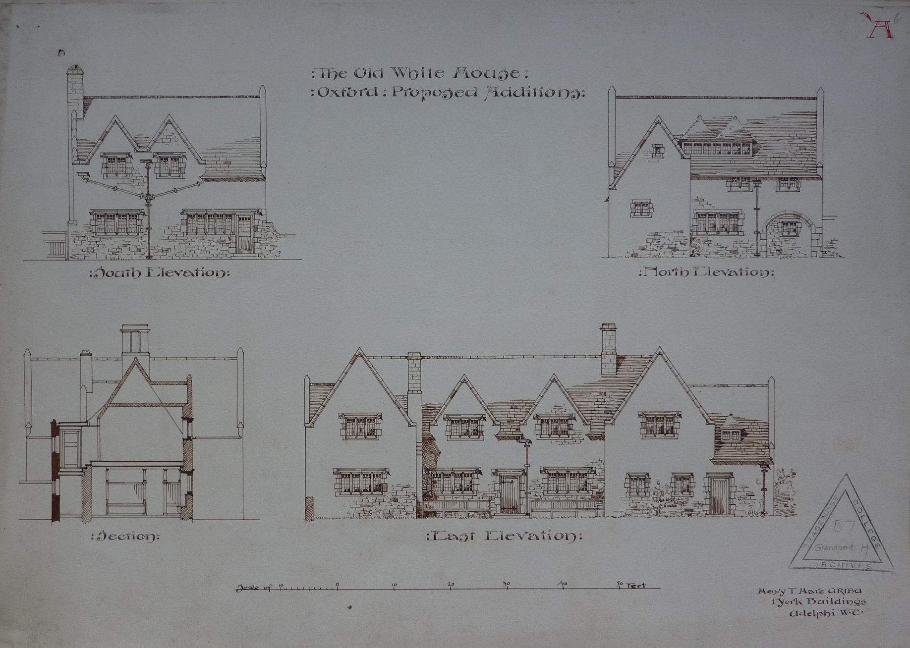 Plans drawn by architect HT Hare for additions to the Old White House pub, date unknown. Images courtesy of Brasenose College. (Click on either image to close)